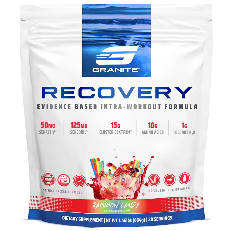 Granite Recovery for Intra & Post Workout |10g Aminos, Electrolytes, Cluster Dextrin for Muscle Recovery & Growth | Amino Acids Supplement with Sensoril | 20 Servings | Rainbow Candy
