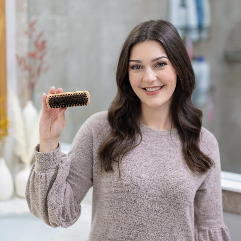 - With boar bristles at its core, this brush is renowned for its unparalleled ability to distribute hair oils evenly, ensuring every strand gets the nourishment it deserves, from root to tip.