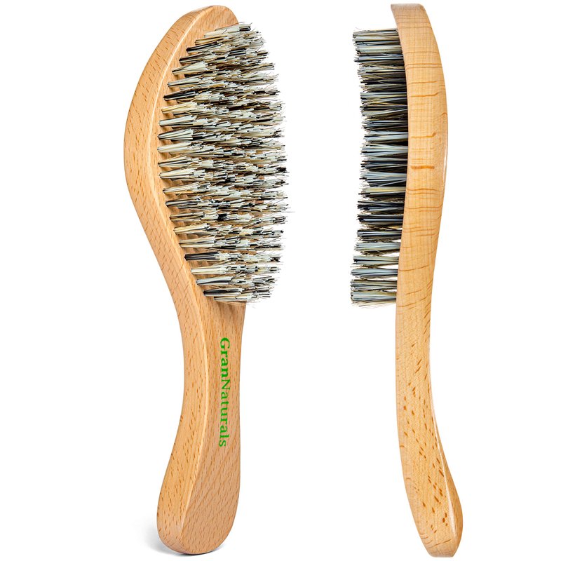 GranNaturals Extra Hard Wave Brush - Curved Boar & Extra Hard Nylon Bristle Hair Brush for 360 Waves