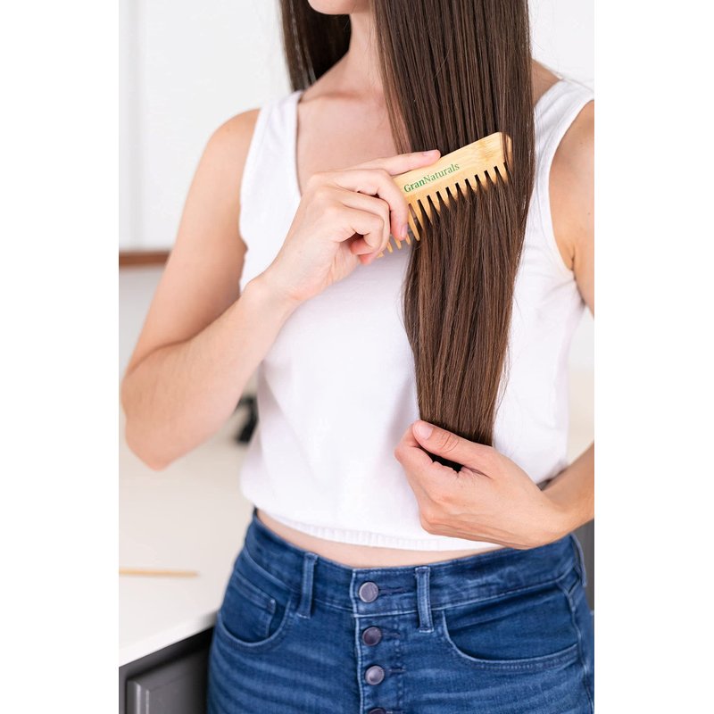 GranNaturals Wide Tooth Wooden Comb - Natural Wood Detangler for Wet or Dry Hair - Prevents Tangle & Static - Styling & Detangling Tool for Straight, Curly, Wavy, Thick Hair