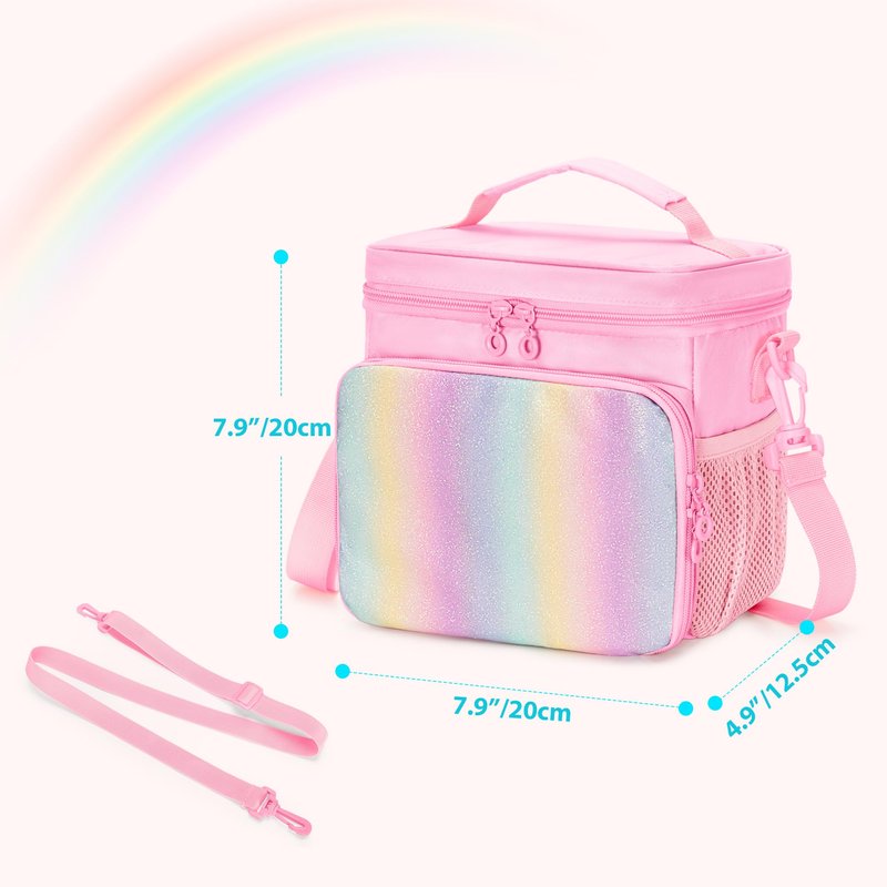 - PATENT DESIGN: There are three colors for you choose; Front pocket of pink and purple are design with rainbow sequins, which is made of polyester material; The storage bag is both practical and beautiful
