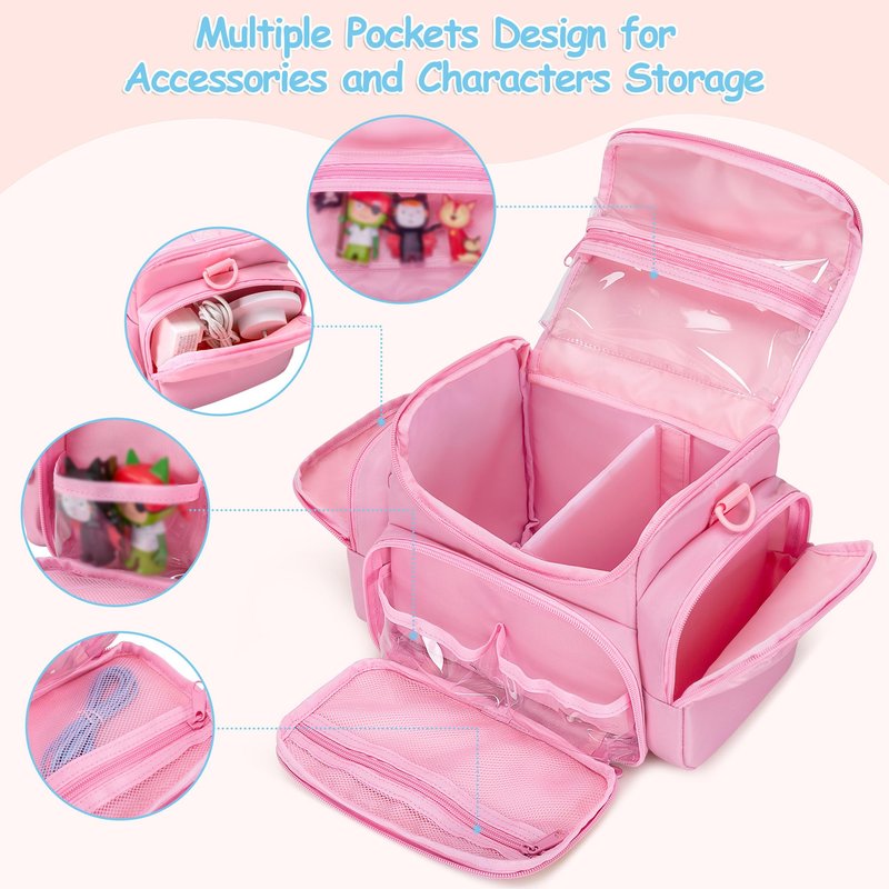 - EXTRA STORAGE POCKETS: Top and front transparent pvc pocket are compatible with Toniebox figures, which can display the figures well; the front mesh zipper pocket can hold charging cable; side pocket hold charging station
