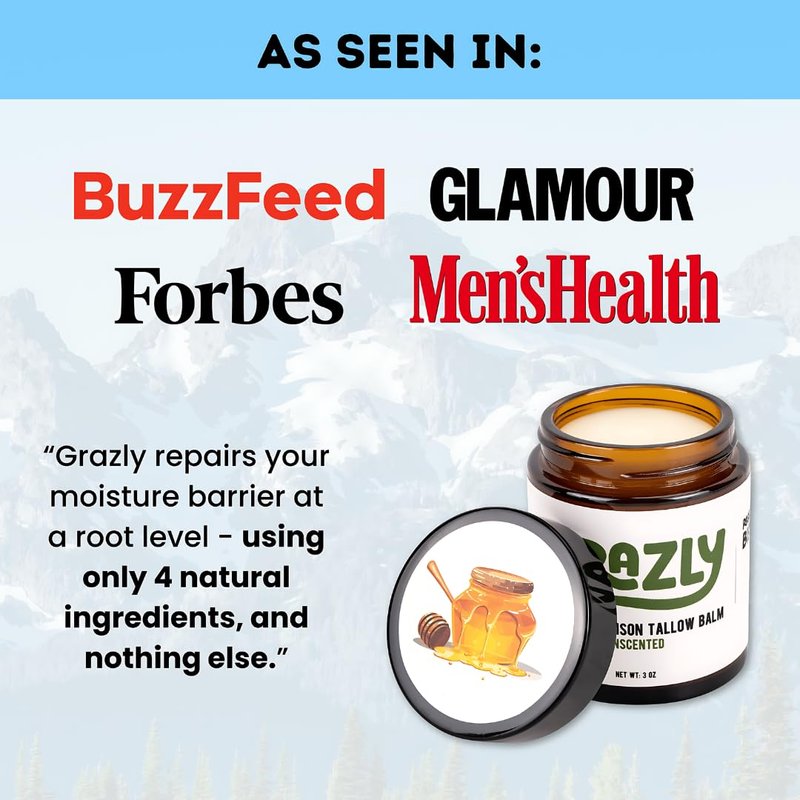 - Soothes & Supports Troubled Skin – Grazly Manuka Honey & Bison Tallow Balm calms irritated skin from eczema, rosacea, and sensitivity. The anti-inflammatory Manuka honey and nutrient-rich bison tallow reduce redness, soothe irritation, and balance moisture, providing gentle care without clogging pores.