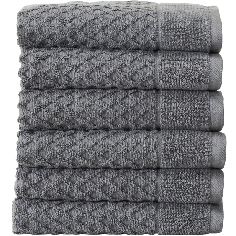 Great Bay Home 100% Cotton Grey Hand Towels | 6 Soft Bathroom Hand Towels | Highly Absorbent, Quick Dry Bath Towels | Grayson Collection (Set of 6, Diamond Dark Grey)