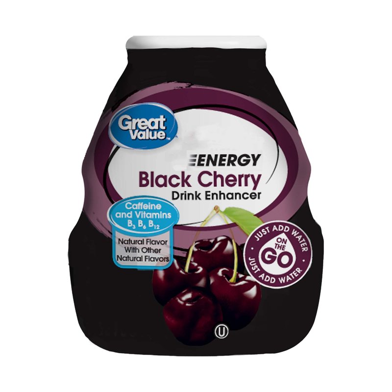 Great Value Liquid Flavor Enhancer | Energy | Sugar-Free, Added Caffeine | Black Cherry | 46 Servings per Bottle | Bottle 3.11 oz | 2 Count