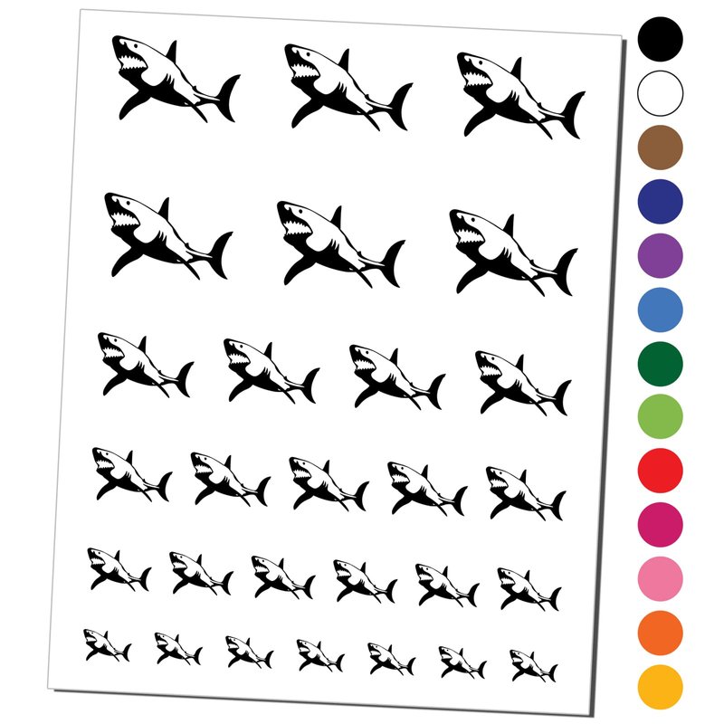Great White Shark Temporary Tattoo Water Resistant Fake Body Art Set Collection - Black (One Sheet)