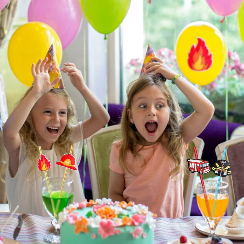 - You'll Get:24pcs Fire Truck theme Drinking Straws, They Come in 6 Pattern, Each With 4 Straws for You to Mix and Match Freely, With 2 Cleaning Brushes.