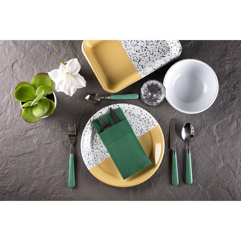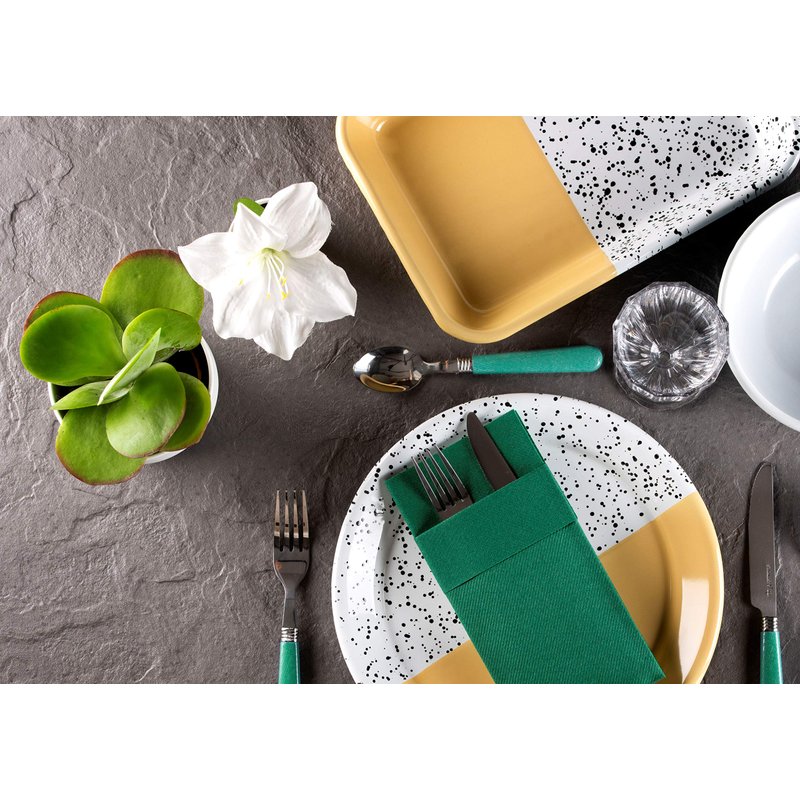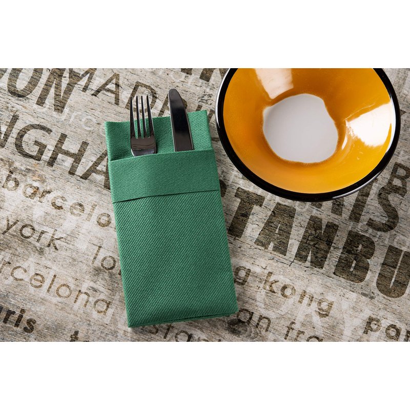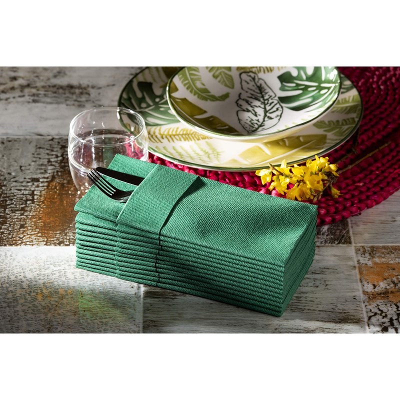 Green Dinner Napkins Cloth Like with Built-in Flatware Pocket, Linen-Feel Absorbent Disposable Paper Hand Napkins for Kitchen, Bathroom, Parties, Weddings, Dinners or Events, 1/8 Fold, Pack of 50