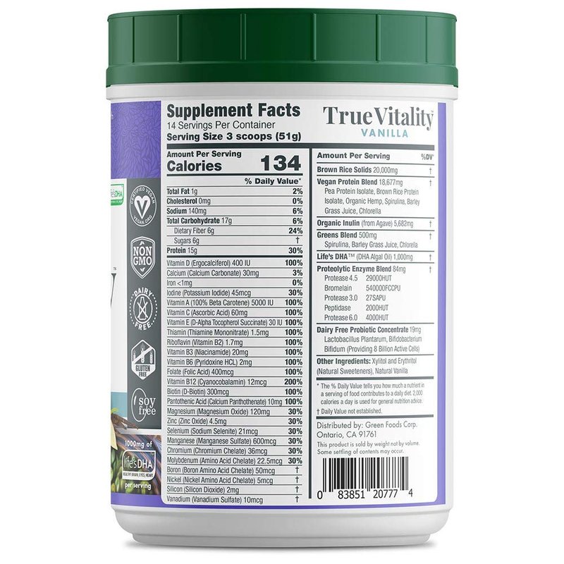 Green Foods True Vitality Plant Protein Shake with DHA Vanilla Description: