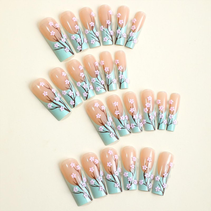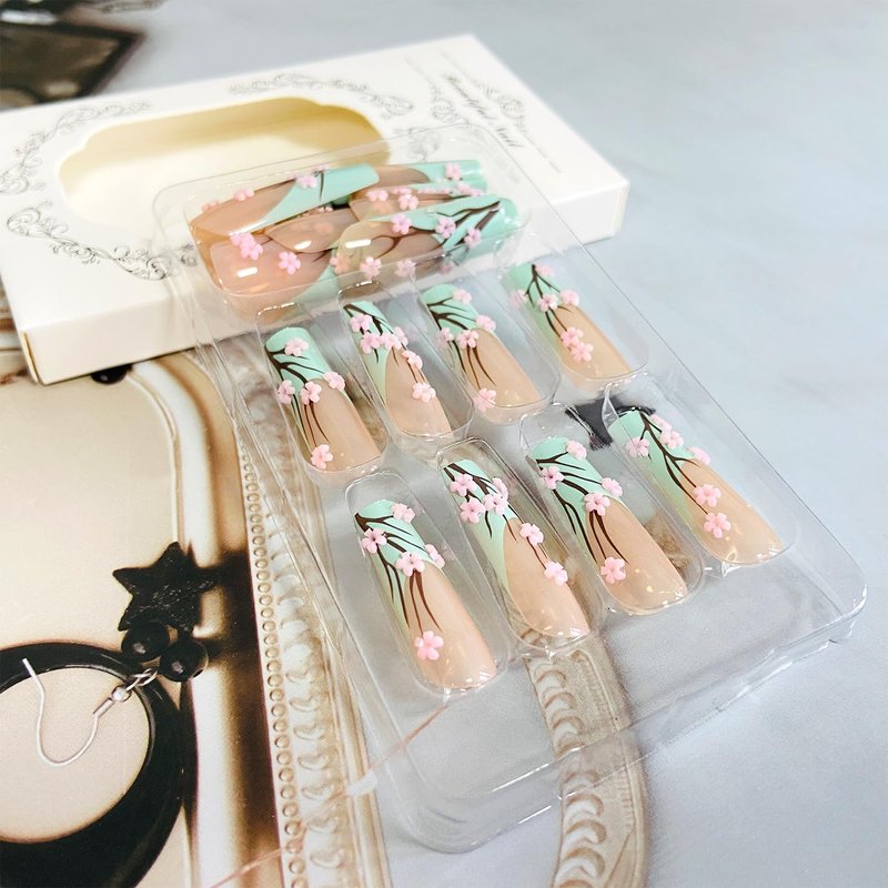 - 【Has Many Uses】Stereoscopic floral false nails , extra long square shape. Perfect for nails salon, DIY home nails art,used on wedding ,prom party ,dating.It is perfect gift for girlfriends, wives, women and girls.