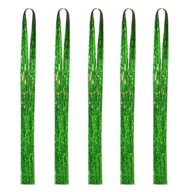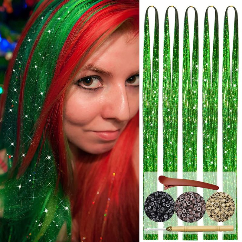 Green Hair Tinsel 47 Inch 1000 Strands Glitter Tinsel Hair Extensions for Women and Girls, Sparkling Shinny Fairy Hair Accessories for Christmas New Year Halloween Cosplay Party