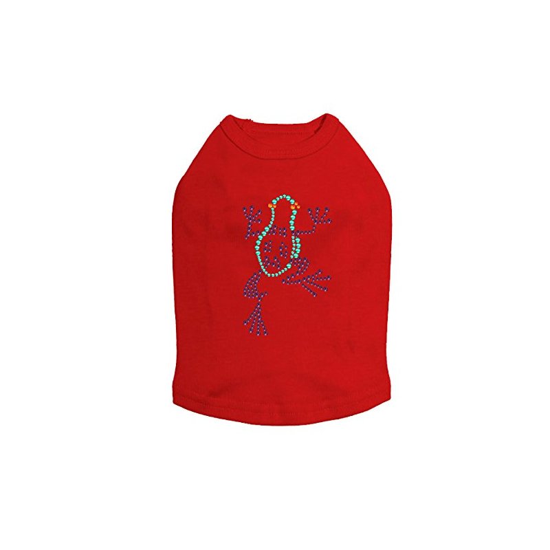 Green & Purple Frog - Dog Tank - Dog Tank for small and large dogs. 3" X 3" design with green, purple, & orange rhinestones & nailheads.