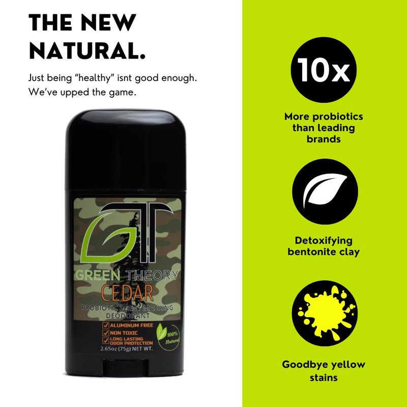 Green Theory Cedar Probiotic Natural Deodorant - Aluminum Free, Hunting, Scent Masking - Tree Scent Collection - 2.65 Ounce Stick