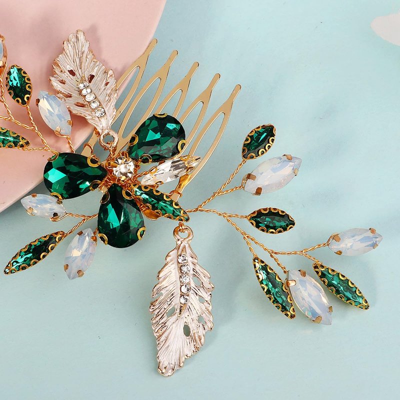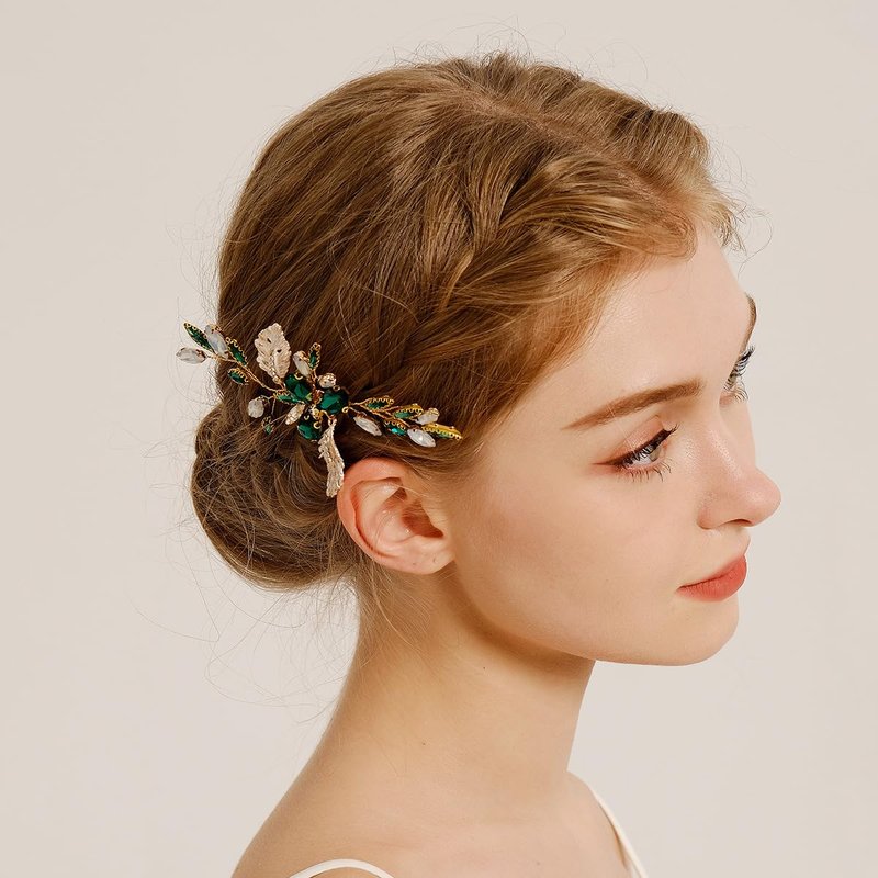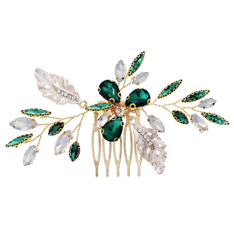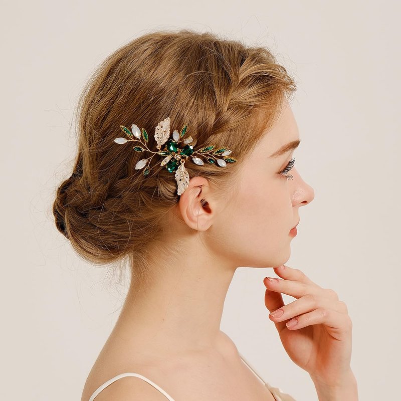 Green Wedding Hair Pieces for Brides Hair Comb for Bride Crystal Bridal Hair Side Comb Rhinestone Hair Accessories for Prom Party (Green-A)