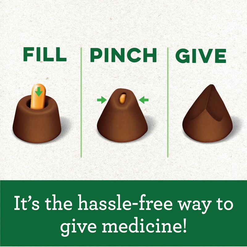 - These Pill Pockets Dog Treats are a cinch to use: Drop the medicine tablet inside the pill pouch, pinch it closed, and give your best friend a tasty snack