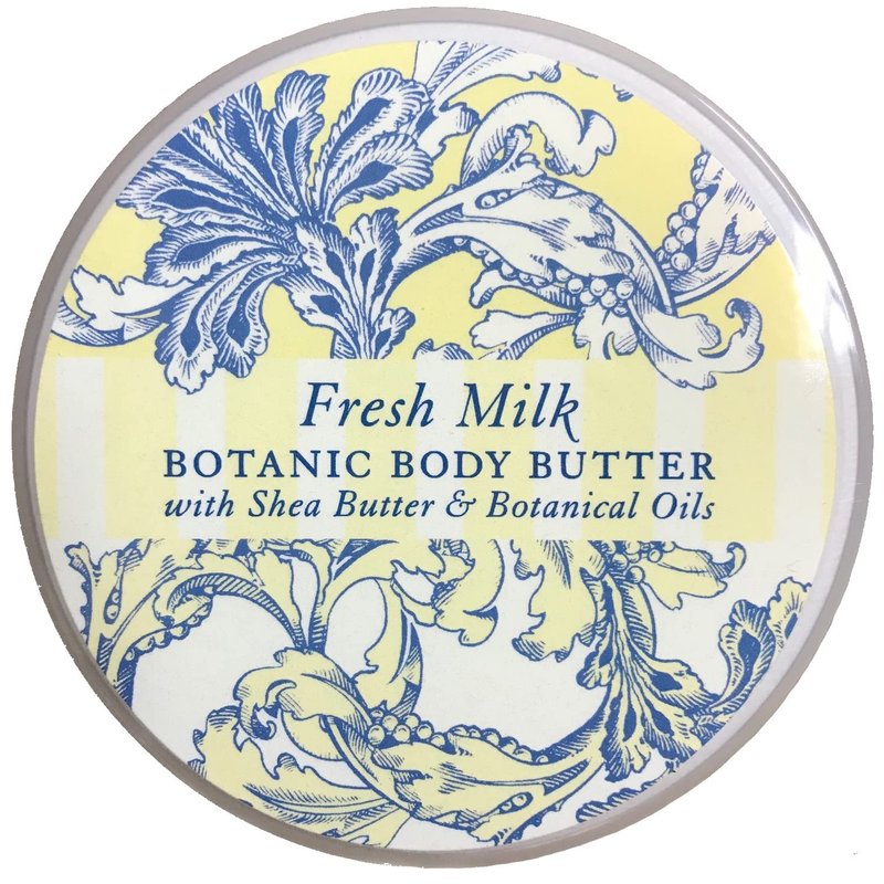 Greenwich Bay Trading Co. Scented Botanic Body Butter - Luxurious Hydration with Shea & Cocoa Butter, Enriched with Vitamin E - 8 Ounce Tub (8 oz., Fresh Milk)