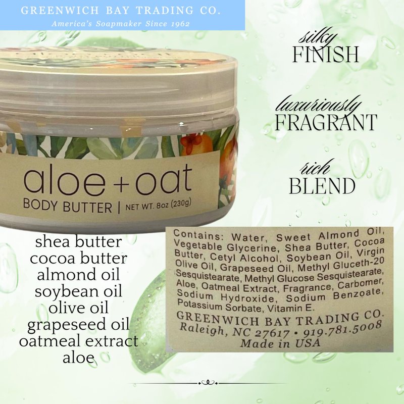 Greenwich Bay Trading Company Aloe Oat Body Butter | Luxurious Moisturizing Cream with Aloe Vera and Oat Extract | 8 oz