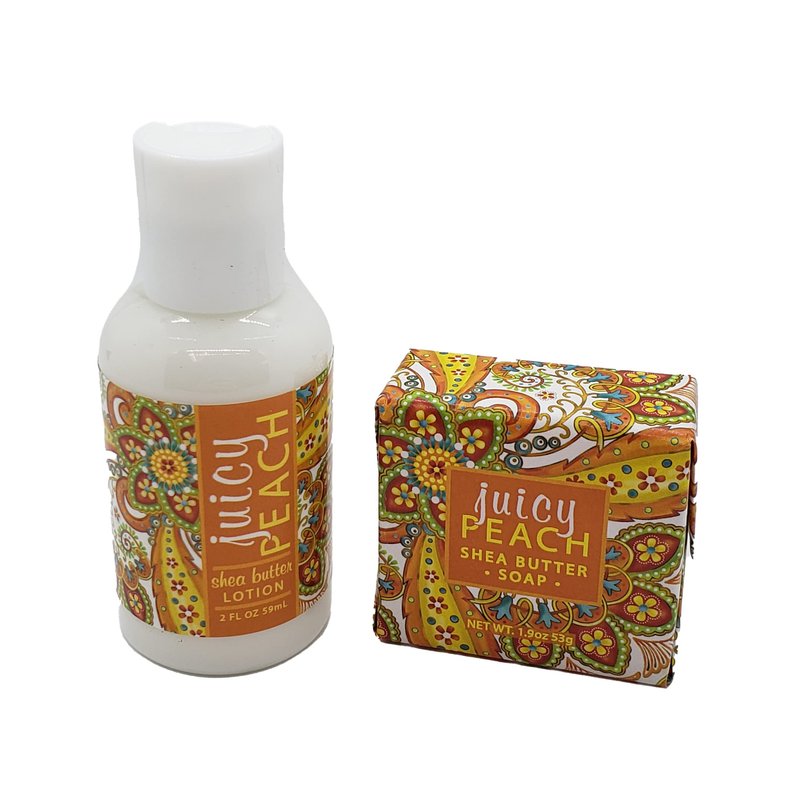 Greenwich Bay Trading Company Botanical Collection Bundle: Juicy Peach - 2oz Mini Wrapped Soap Block + 2oz Mini Shea Butter Lotion