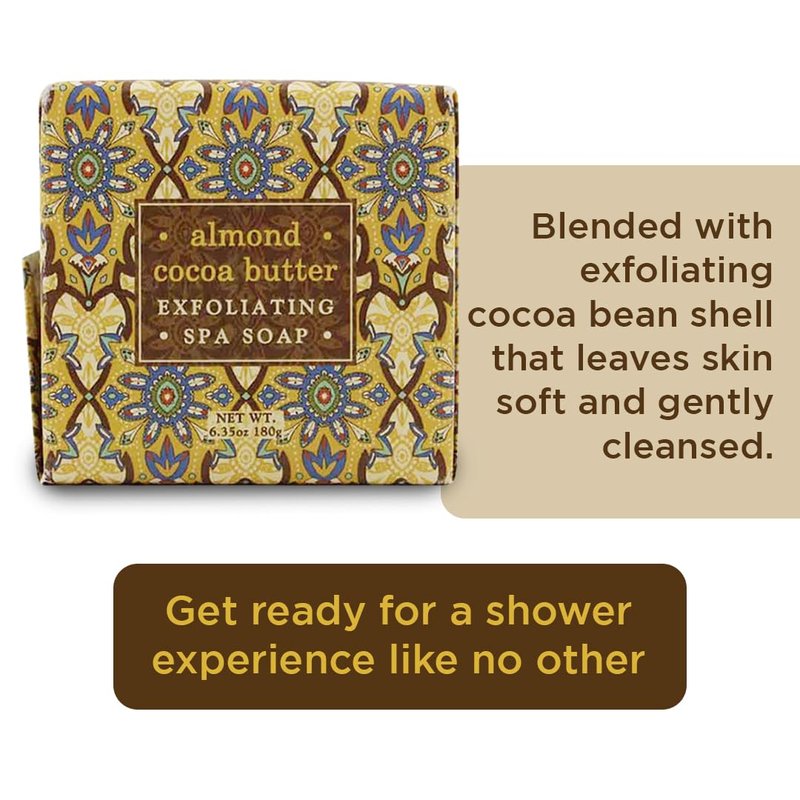 Greenwich Bay Trading Vegan Natural Botantical Shea Butter Bar Soap, French Milled Triple Milled, Essential Oils, 6.35 ounces (Almond Cocoa Butter Exfoliating)