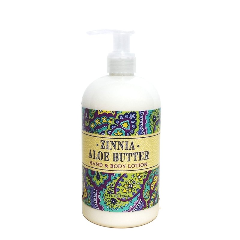 Greenwich Bay ZINNIA ALOE BUTTER Hand & Body Lotion Enriched with Shea Butter and Cocoa Butter 16 oz
