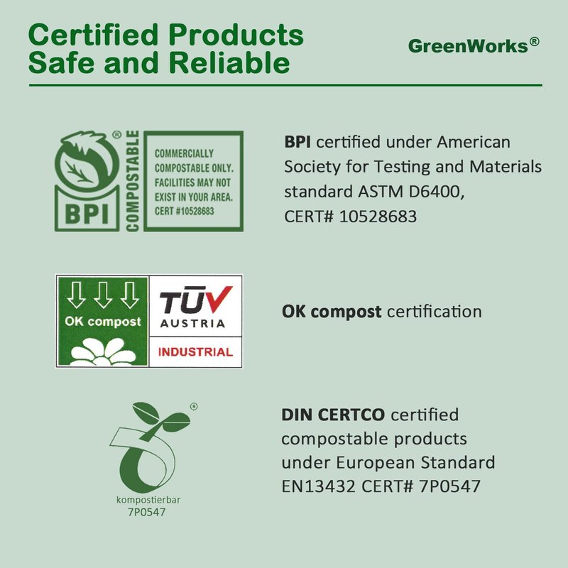 - BPI certified commercially compostable under ASTM D6400, CERT#10528683