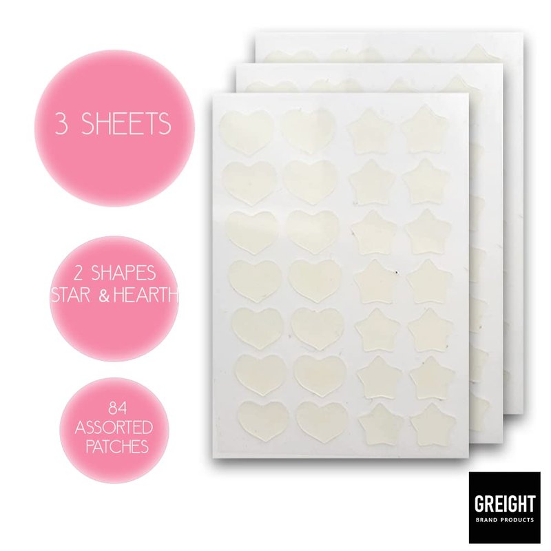 GREIGHT BRAND PRODUCTS Hydrocolloid Acne Pimple Patch Heart and Star Shape 84 Patches - Acne Treatment For Breakout, Conceals Acne, Reduces Pimples and Blackheads