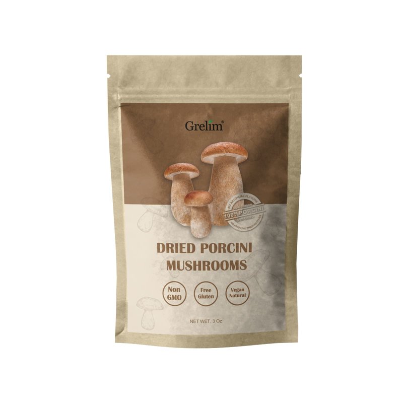 GRELIM Dried Porcini Mushrooms, New Season Sun Dried Wild Porcini All Natural, Vegan, Easy Preparation and Rehydrate Ideal for Sauces, Risottos 3 oz