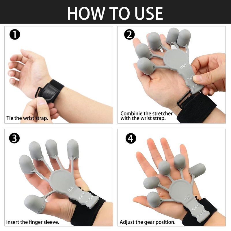 - Resistance Levels Finger Stretcher: Grip strength trainer package include 1 black and 1 grey finger resistance band, 2 adjustable wrist straps, 2 hand strengthener comes with two wrist straps for more convenient to exercise