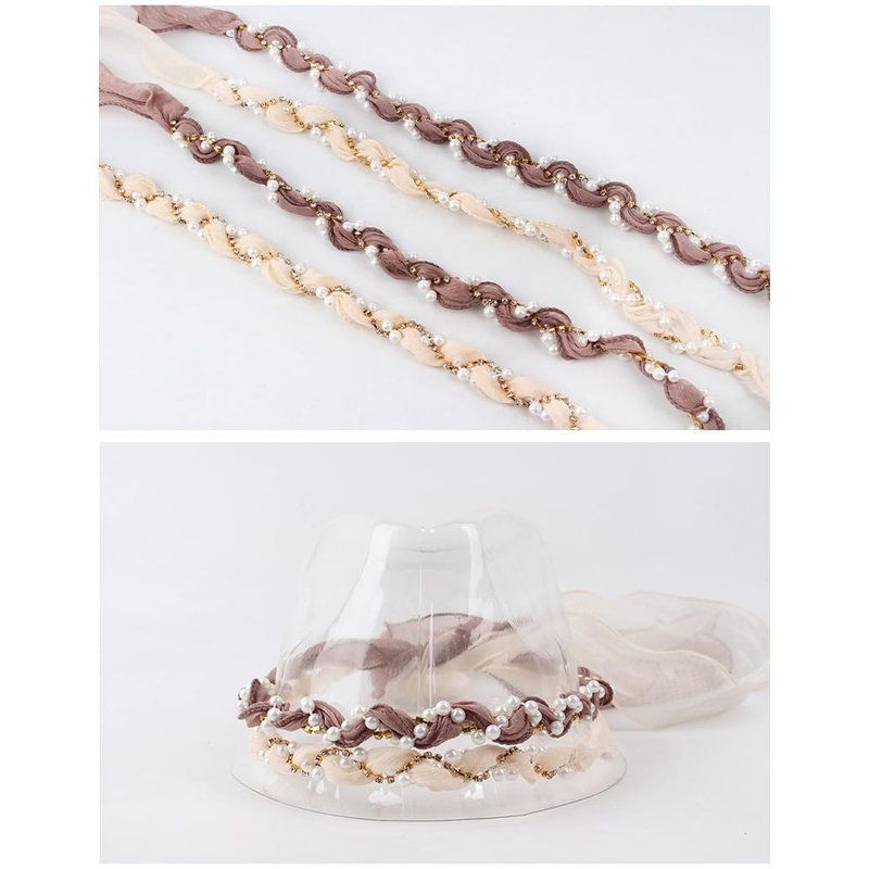 - 【High-Quality Materials】- Made with acrylic pearls and crystal claw chains, this hat band is designed to withstand the elements and maintain its beauty for years to come. The organdy weaving adds a delicate touch, ensuring that your accessory remains in pristine condition even after repeated use.