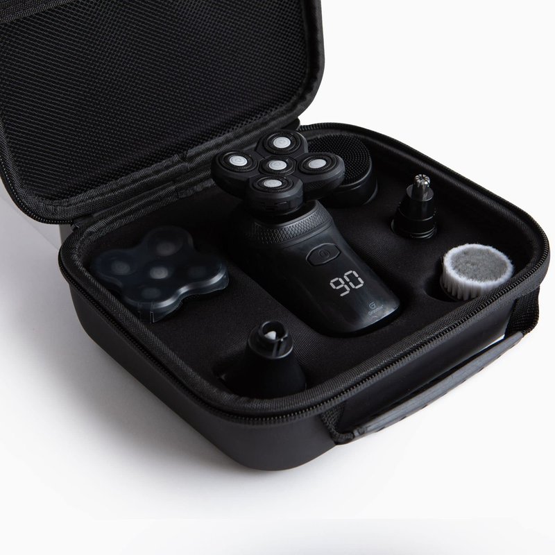 Our hard cover travel case is specially designed to secure and protect your Groomie BaldiePro and your shaving accessories. With this portable case, you'll be able to take our revolutionary electric shaver anywhere! Unlike older leather shaving bags, our carrying case features a sleek black look that won't clash with your travel gear. You'll never have to worrying about your head trimmer or toiletries being damaged while going to your destination. Soft trimmer bags can rip or absorb water while being placed on a vanity or sink. Our rugged well-built case features durable zippers and handle. You won't have to worry about your bag fraying, tearing or soaking up water. Our company prides itself on manufacturing high-quality shavers and accessories for balding men that can stand up to the daily grind. Our line of thoughtfully-designed products make men's grooming easy, quick and hygienic.