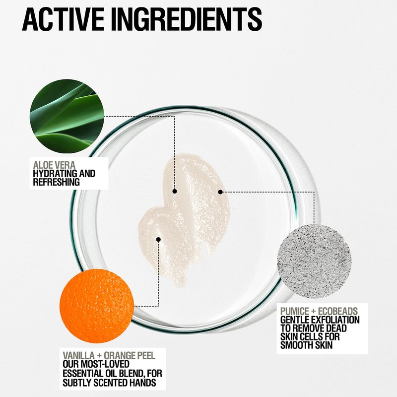 Gentle exfoliating hand wash to cleanse, soften and revitalize skin.