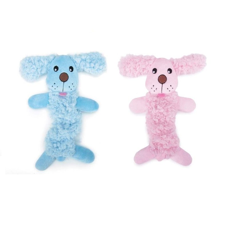 Baby Bark Bungee Pup Toys are little toys for little dogs, and the perfect gift for pet parents welcoming a puppy into their homes.Baby Bark Bungee Pup Toys includes flat and fluffy textures in the softest fleece.Endearing facial expression is embroidered onBungee feature lets toy s-t-r-e-t-c-h, to teach puppies tugging gamesA cozy comfy little carry-around toy for newborns and baby dogsEach measures 12 extendedIn traditional new baby colors of pink and blueMaterials: 100% polyester plush, bungee elastic, squeaker