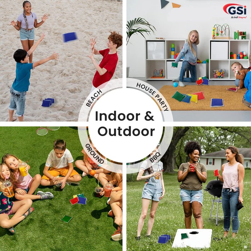 - ✔ Long-Lasting: GSI Kids Mini Bean Bags are double-stitched for strength and durability, making them suitable for surfaces such as floors, tiles, carpets, lawns, sand, and concrete. This feature makes them perfect for toss and cornhole games, both indoor and outdoor, with family and friends.