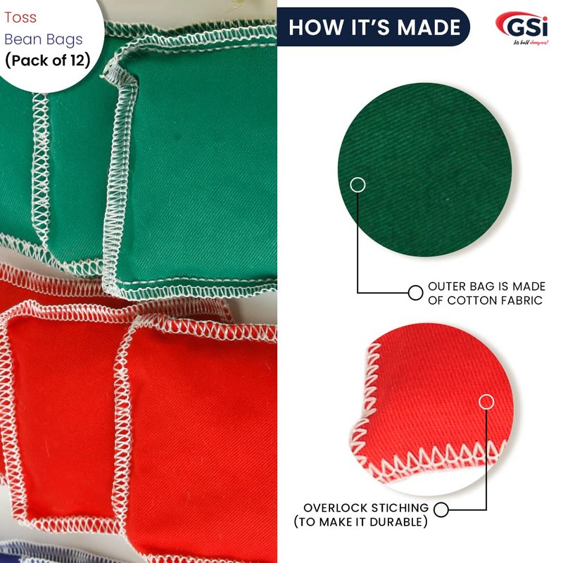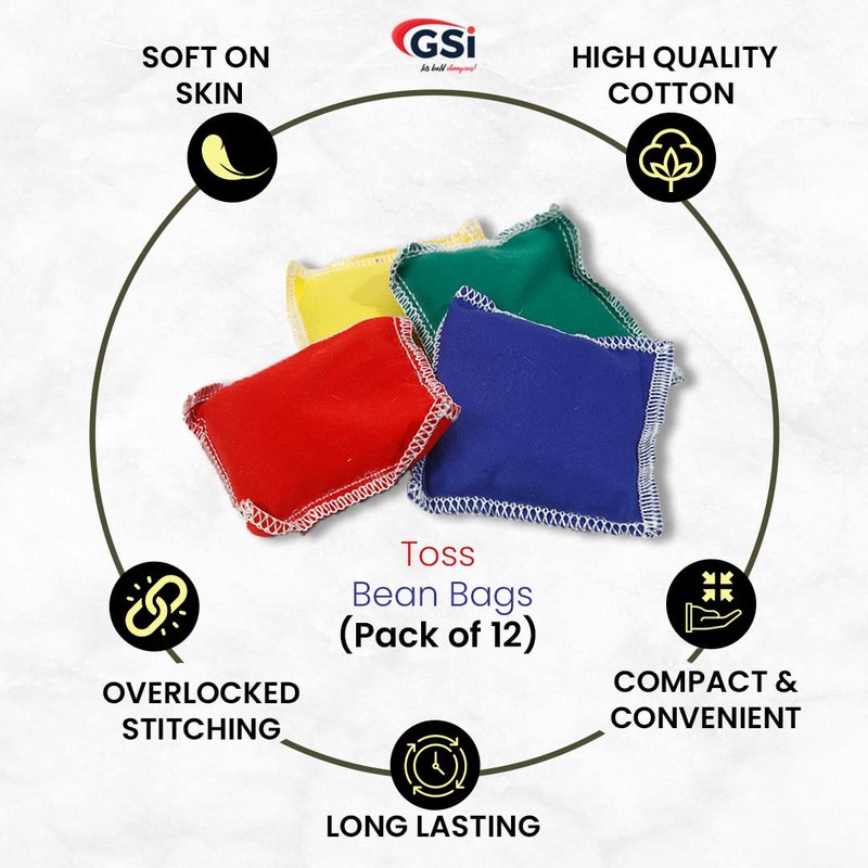 - ✔ Cotton Fabric: GSI Toss Small bean bags are made from high-quality cotton drill fabric that is durable and lightweight. The soft material is gentle on the skin, making it perfect for children to play with during picnics, play school, and preschool games like hopscotch and target toss.