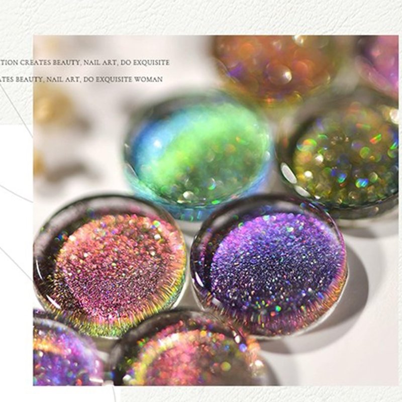 - The Magical Galaxy Nail Effect: The chameleon color reflective diamond cat eye effect, combined with holographic micro-light galaxy effect gel nail polish, brings you an amazing reflective and shiny diamond-like 9D cat eye effect on the nails. Different lighting and angles will create various stunning effects.