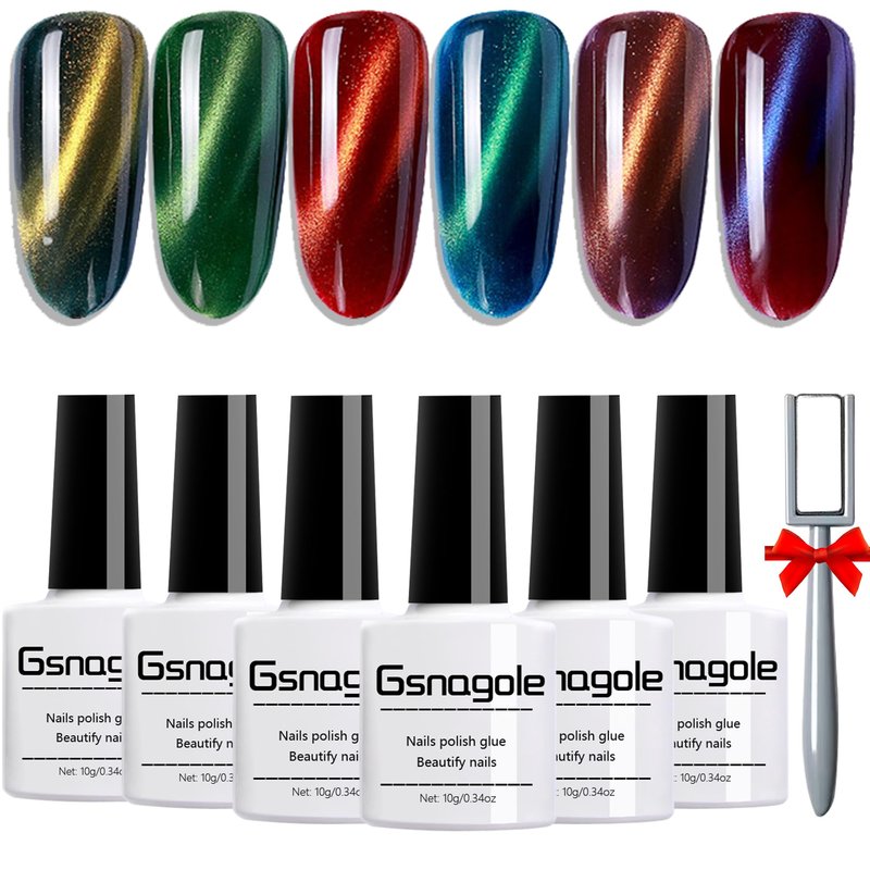 Gsnagole Gel Nail Polish Kit - Cat Eye Magnetic Gel Nail Polish Set, UV LED Soak Off Nail Art Varnish, Manicure Gift Set (Includes Magnet, 10ml per Bottle). (LLMY-1-6)