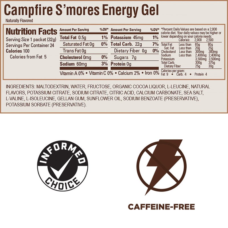 GU Energy Original Sports Nutrition Energy Gel, Vegan, Gluten-Free, Kosher, and Dairy-Free On-the-Go Energy for Any Workout, 24-Count, Campfire S'Mores
