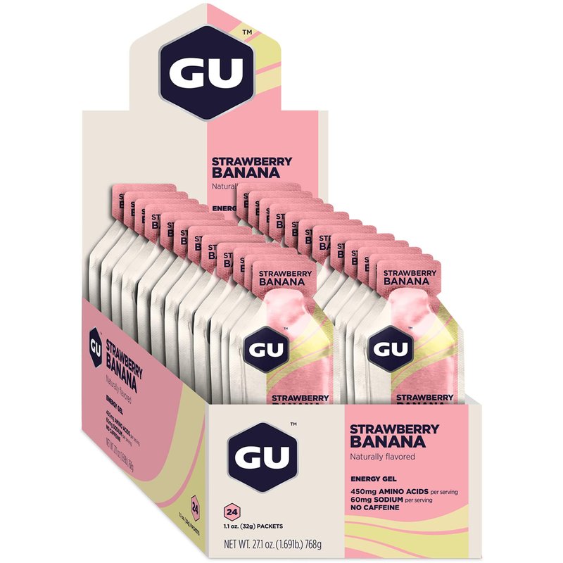 GU Energy Original Sports Nutrition Energy Gel, Vegan, Gluten-Free, Kosher, and Dairy-Free On-the-Go Energy for Any Workout, 24-Count, Strawberry Banana
