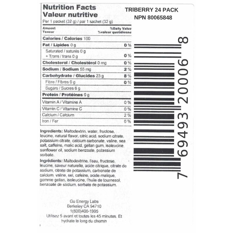 GU Energy Original Sports Nutrition Energy Gel, Vegan, Gluten-Free, Kosher, and Dairy-Free On-the-Go Energy for Any Workout, 24-Count, Tri-Berry