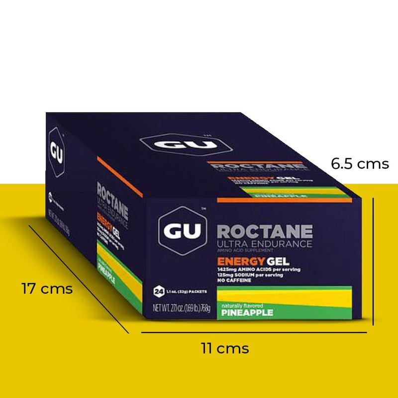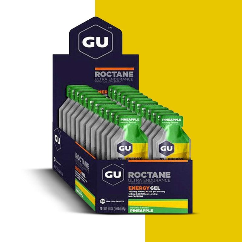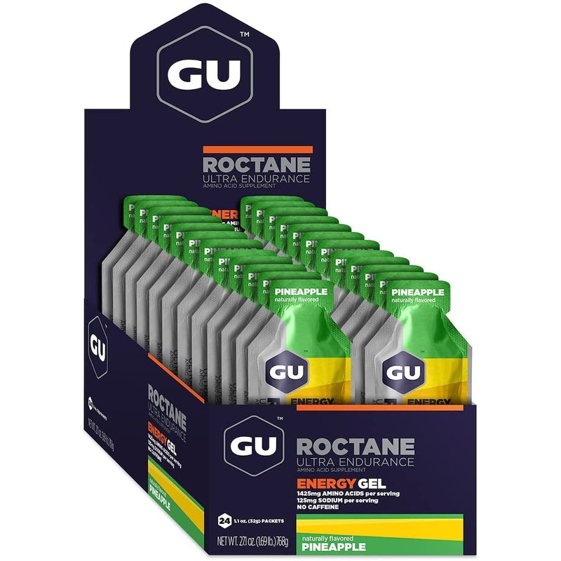GU Energy Roctane Ultra Endurance Energy Gel, Vegan, Gluten-Free, Kosher, and Dairy-Free On-The-Go Sports Nutrition for Running, Biking, Hiking or Skiing, 24-Count, Pineapple