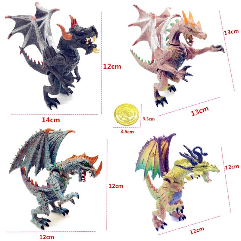 Made of environmentally friendly plastic, solid, non-toxic paint. 4 styles and colors, add these ancient dragons and gold coins to your castle battle! Inspiring children to be creative pretend games. Great party supplies or gifts! It is an ideal gift for children.