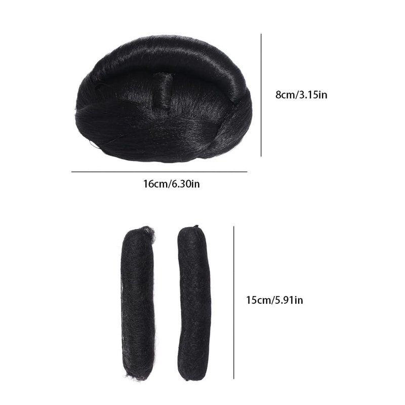 - The package includes: 1pc fake hair bag and 1pair of croissants, the size of the fake hair bag is 8*16cm/3.15*6.30inch, the length of the croissant is about 15cm/5.91inch, very friendly for beginners, easy to wear.