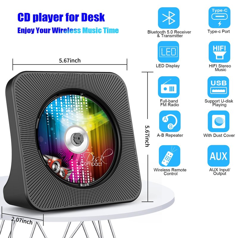 - 【Bluetooth 5.0 Supported】Equipped with Bluetooth version 5.0,Gueray cute desk CD player not only can connect your wireless earphone or Bluetooth speaker to listen to music from CD/USB/TF card/FM, but also can receive the Bluetooth signal from your Bluetooth devices like cellphone/tablet/laptop/Airpods. Stable to connect, you are not worried that the song will be disconnected while listening to this CD player.