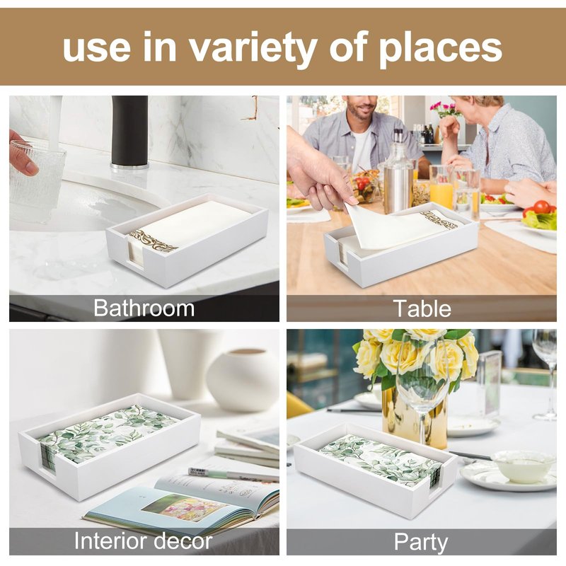 - 【Paper Towel Holders】: Just get one and display it your on the kitchen counter,dining table or office desk ,also can used as a tissue dispenser for your vanity and bathroom.This guest towel holder tray works great alone or mix and match it with other, napkin holder for cocktail will provides a stylish storage space for you!