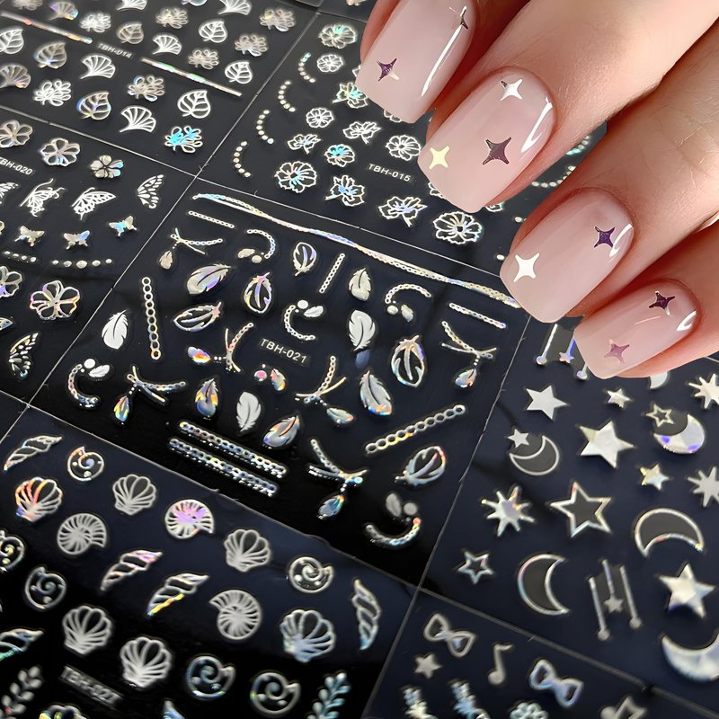 - 【Package Contents】You will get 30 sheets aurora nail decals in one set of different flower heart and star shapes nail stickers, satisfy all your love for beautiful nails, a variety of elements for you to choose from to DIY your own nail art designs