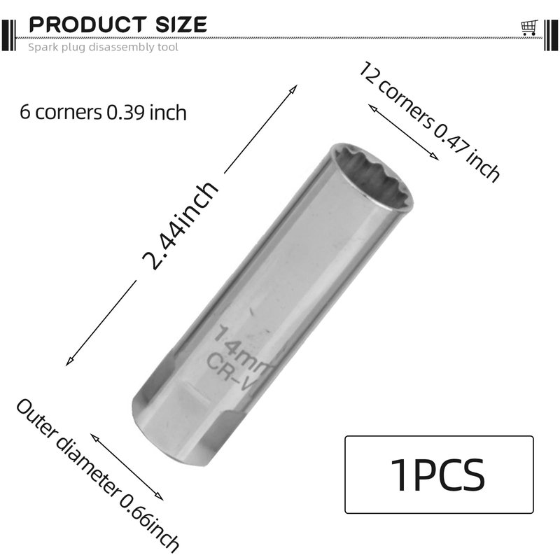 - Package Includes: You will receive 1 x 14mm spark plug socket, 12 point, 3/8" driver. Overall length is 3.8"/97mm, outer diameter 0.7"/17.9mm, gimbal helps the socket get into hard to reach areas and angles for extra flexibility and maneuverability, improving work efficiency.