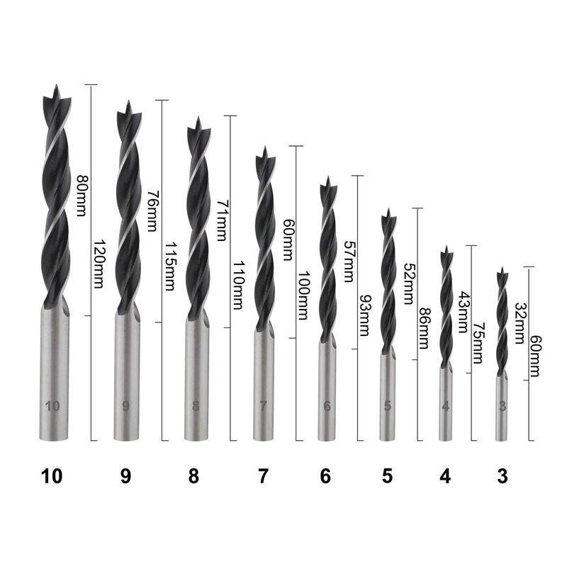 - WOOD DRILLING BITS SET: Owning a ready to use most optimum set of tools is the deed of any professional and even beginner. Gunpla brad point woodworking drill bits set is made up of 8pcs well sharpened woodwork bits measuring 3, 4, 5, 6, 7, 8, 9, 10mm each, as different projects could require different sizes