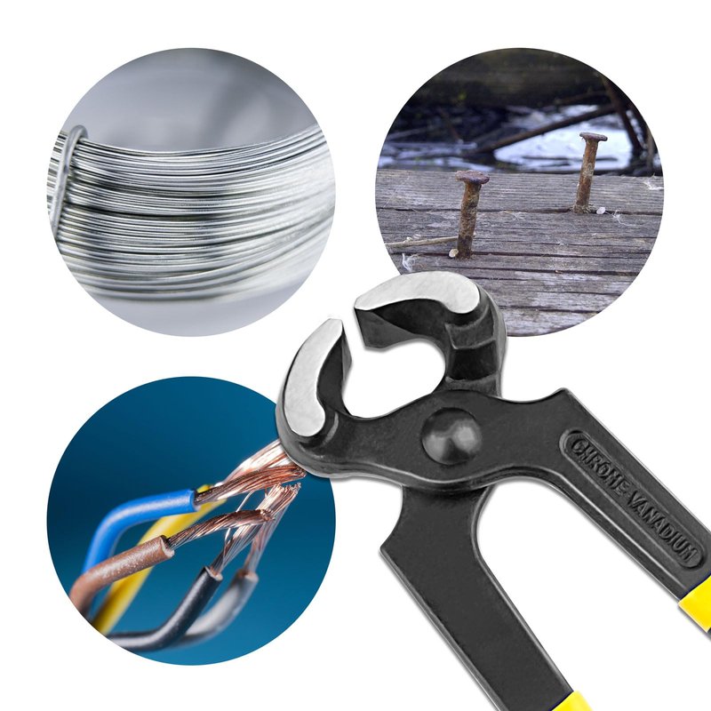 - Easy Nail Removal: Induction hardened blades stay sharper longer. Crafted to ease any actions and help carpenters in their daily duties. These pincers pull out nails from wood without damaging the surface. These end cutting pliers are made durable, strong, well sharpened to be able to cut steel wire up to 1.2mm.