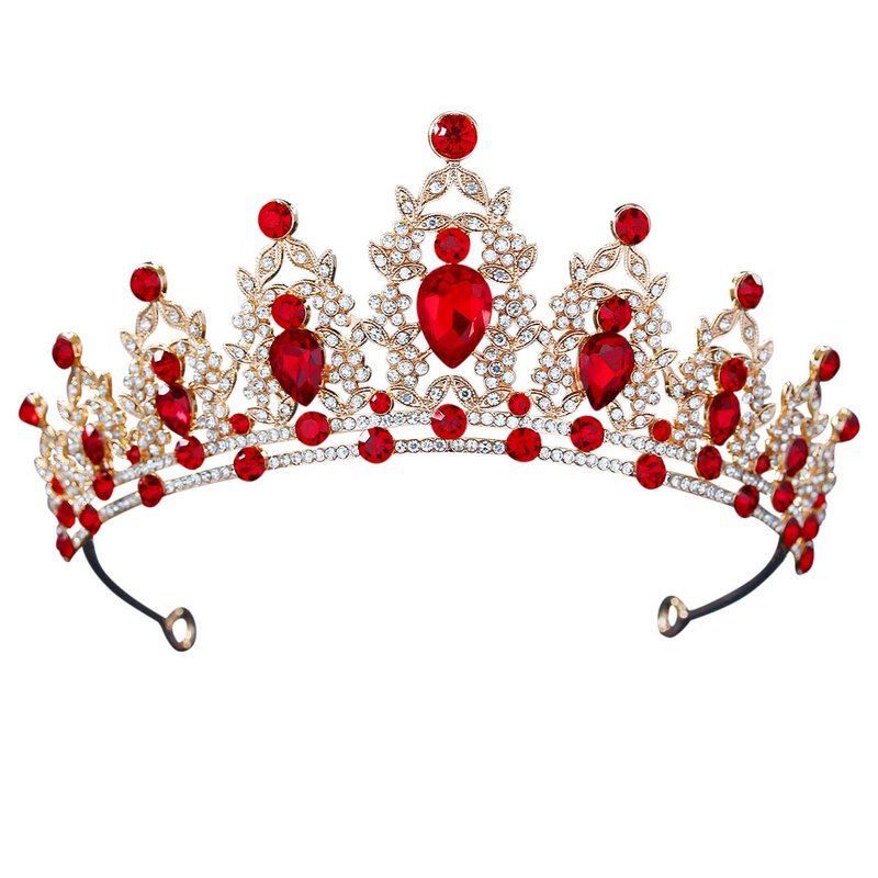 Guoeappa Crystal HeadBand Queen Tiara Crown for Women Bridal Wedding Girls Birthday Party(Red)