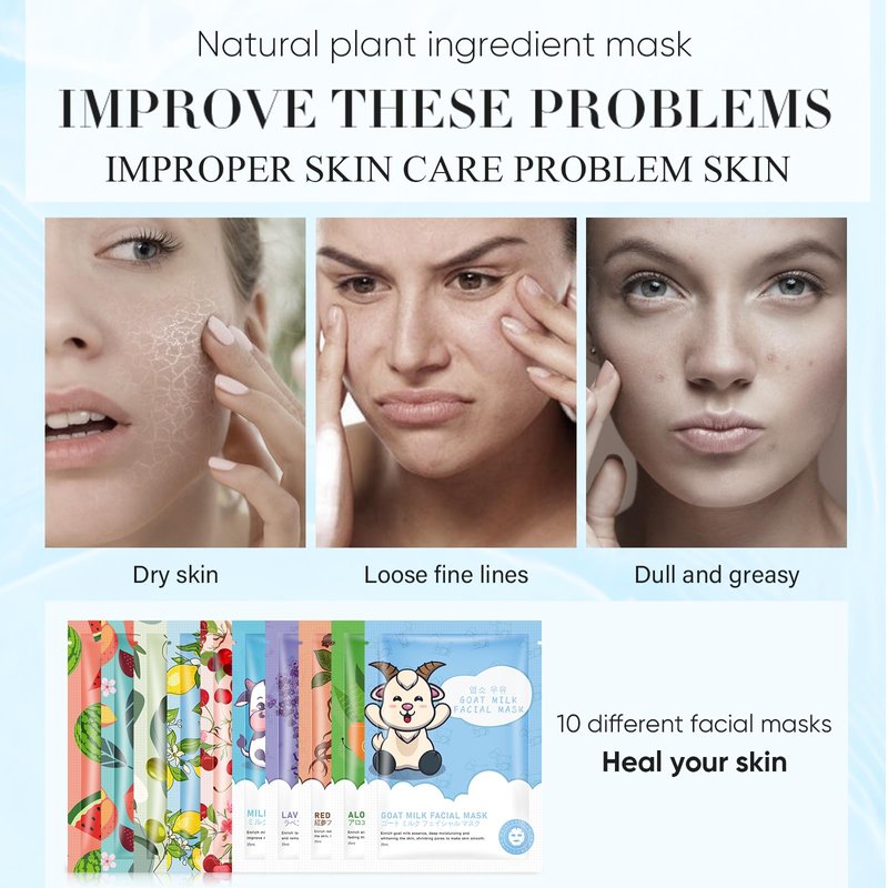 GUOYAOLIFU Facial Mask Sheet, Collagen Face Masks Skin care for All Skin Types Facial Mask Hydrating Sheet Face Mask Skin Care Oil Contral Moisture, Bulk Facial Mask Set for Women Skin Care(10 Pack)